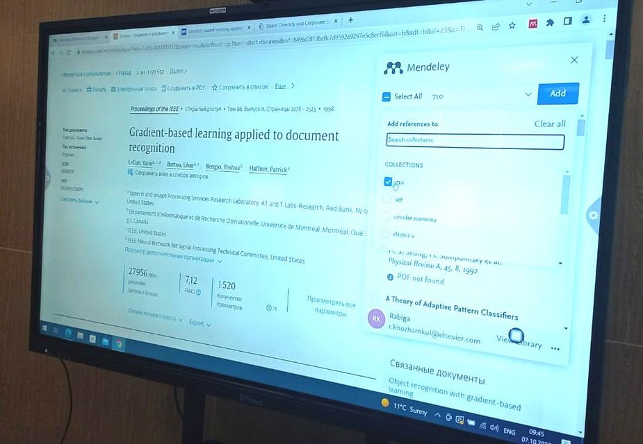 💻Закончился трехдневный семинар-тренинг представителя компании Elsevier (Scopus) в Казахстане и Центральной Азии Рабиги Кожамкул. Семинары прошли в спокойной непринужденной форме, каждый день обсуждались разные вопросы, касающиеся успешной публикации научных статей – как зарегистрироваться в базе данных, как использовать Scopus для подготовки успешной публикации, про этапы написания статьи и т.д.