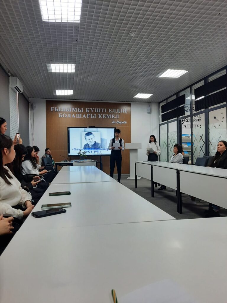 📚📘📗 Кеш соңында белсене қатысқан білім алушыларға сыйлықтар беріліп, жазушы шығармашылығынан мол мәлімет беретін «Халқы сүйген қаламгер» тақырыбында дайындалған кітап көрмесі таныстырылды.