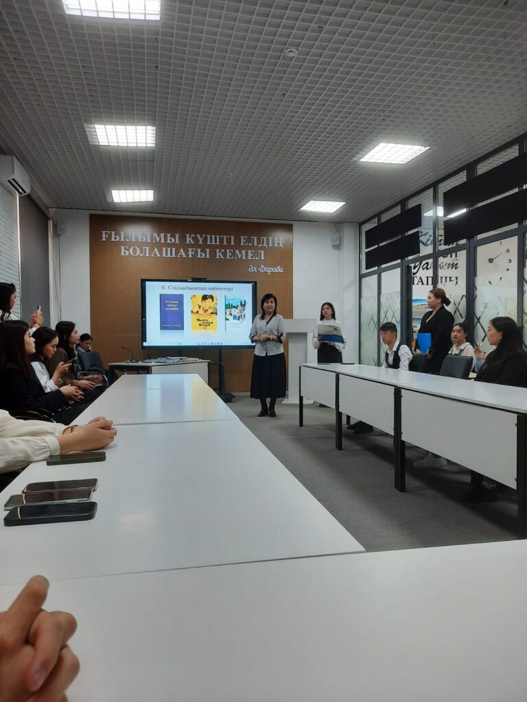 📚📚 «Бір ел – бір кітап» республикалық акциясы аясында белгілі жазушы, балалар әдебиетінің классигі Бердібек Соқпақбаевтың 100 жыл толуына орай «Open space» кітапханасында гуманитарлық-педагогикалық институтының білім алушылары мен ғылыми кітапхана қызметкерлерінің ұйымдастыруымен «ХАЛҚЫ СҮЙГЕН ҚАЛАМГЕР» атты әдеби кеш өткізілді.