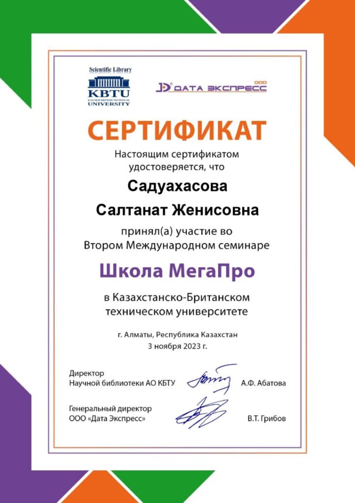 В г.Алматы при базе КБТУ прошел 2-ой международный семинар Школа МегаПРО. Семинар проводили разработчики АИБС Мегапро Левова Людмила Васильевна — Исполнительный директор ООО «Дата Экспресс», Ефремов Сергей Васильевич — IT директор ООО «Дата Экспресс», Чемидова Алена Валерьевна — Специалист службы внедрения и технической поддержки ООО «Дата Экспресс».