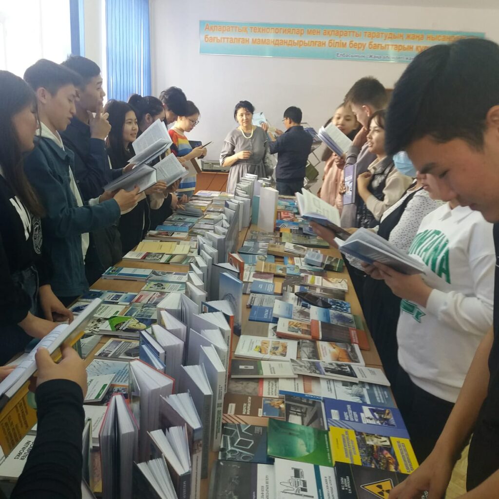 Көрмеде білім алушыларға, оқытушыларға кітап оқу, қазіргі электронды кітапхананың мүмкіндіктері туралы ақпараттар берілді.